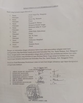 Pota- Proletarmedia.com Berdasarkan surat pernyataan pembebasan lahan yang mengetahui lurah Pota bahwa ada beberapa point yang tidak dicantumkan dan surat tersebut dapat dikatakan cacat hukum