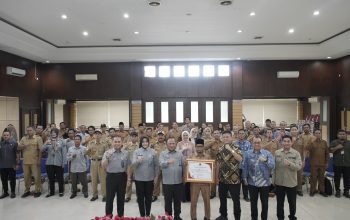 Bupati OKU Timur, H. Lanosin, ST didampingi oleh Wakil Bupati OKU Timur HM. Adi Nugraha Purna Yudha, S.H., Asisten, Kabag Hukum, Kabag Tata Pemerintahan, Staf Ahli, Kepala Dinas PMD, Kepala Bappeda, Kepala Kesbangpol dan staf khusus.