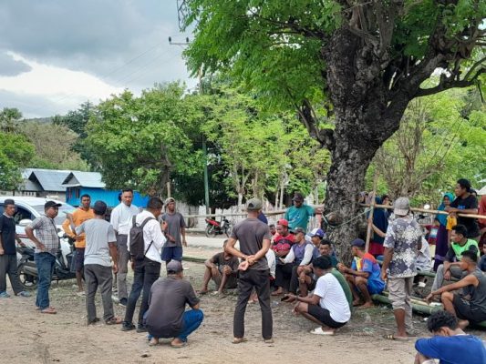 Massa aliansi menilai langkah yang diambil oleh Kepala Desa Nanga Mbaur melakukan pendropingan di lapangan olahraga mencerminkan sikap inkonsistensi.