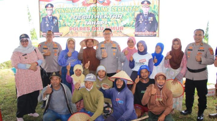 OKUTIMUR – Polres OKU Timur Polda Sumsel menggelar kegiatan Penanaman Serentak 1 Desa 1 Hektar Lahan Jagung di Desa Tambak Boyo, Kecamatan Buay Madang Timur, Kabupaten OKU Timur. Jum’at, 29 Agustus 2025.