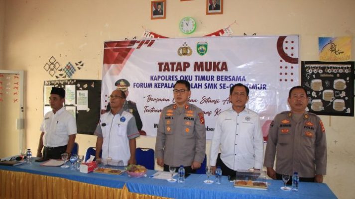 OKU TIMUR – Polres OKU Timur Polda Sumsel menggelar kegiatan tatap muka pemberian bimbingan dan arahan serta diskusi bersama Forum Kepala Sekolah SMK se-Kabupaten OKU Timur.